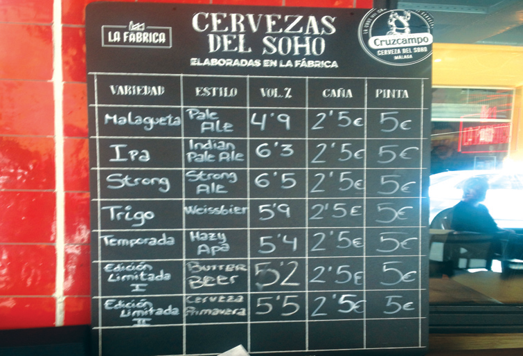 For several years now, Britain has seen an increase in the number of breweries producing American beer styles, closely followed by Scandinavia and Italy. Gradually Spain too has followed suit. Take Malaga, in southern Spain. The city could boast a few fairly decent bars with some decent beer but in the last three years the number has increased substantially, including some brewpubs. Take the latest venture by Heineken who, in conjunction with the local San Miguel operation, have opened a massive modern brewpub called La Fabrica. Savis Craft Brewery also has a tap room in the city. Both breweries’ beers are heavily influenced by the America style with IPAs, APAs and Pales dominating the beer list. This is also true of most of the beers stocked by Malaga’s beer bars including the ‘craft’ Spanish beers available.