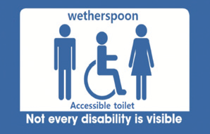I’m pleased to report that following an incident when a customer who ‘didn’t appear to be disabled’ was told off by staff for using its accessible toilet, JDW have decided to support the Not Every Disability is Visible campaign being run by the charity Crohn’s & Colitis UK. According to C&CUK, as reported in the Morning Advertiser, 43% of people suffering from Crohn’s or Colitis said they felt prevented from going to pubs because they fear discrimination when trying to use the accessible toilets. JDW are installing new signs on their accessible toilets. Let’s hope that other pub operators follow suit.