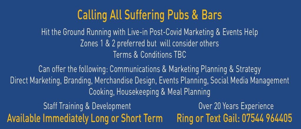 SW10, FINBOROUGH ARMS. As at early 2021 it is reported that the lease of this site is for sale.