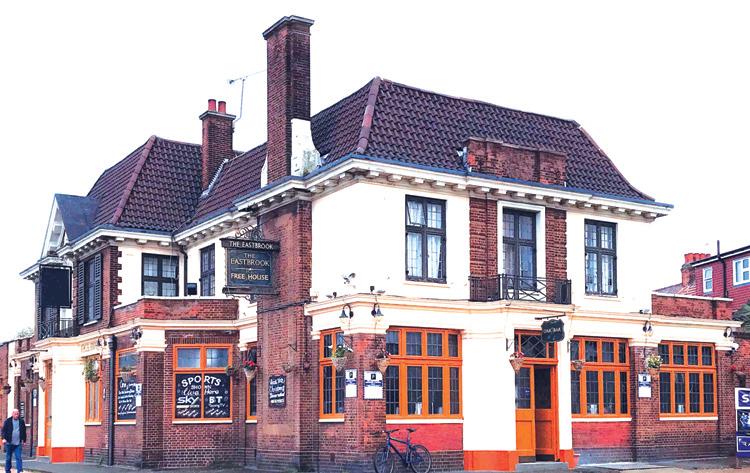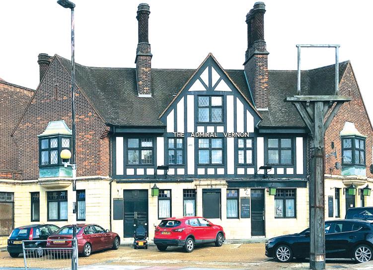 This pub is also on CAMRA’s National Inventory and is believed to have been built in 1937 for Courage to serve part of the vast London County Council Becontree Estate. Despite the intervening years, this estate pub has kept a great deal of its original plan, fittings and character. It is in the popular Brewers’ Tudor style with imitation exterior half-timbering above and buff faïence tile cladding below. On the far left is a former off-sales shop, now occupied by a floral designs business. The rear lounge bar/function room is in a single-storey part of the building. To the left is the public bar (originally two rooms) and the upper section of the partition that once separated them remains. It could be that what has been removed was a folding screen, as one survives in the right-hand bar. All the rooms have three-quarter height panelling and a decorative plaster frieze with depictions of hops, flowers and acanthus leaves. The original bar counters survive and there are orange terrazzo spittoon troughs around their base. The middle bar was also originally two rooms. On the left was a small snug and then a saloon bar and the upper part of the partition separating them remains. Behind the servery is the original publican’s office that is still in daily use. Folding doors separate the middle bar from the rear lounge bar/function room. Most parts are usually in the open position, with just the right-hand section being closed. However, for functions the folding doors are completely shut. The Gents’ here has access from both the rear and middle bars and retains its original doors, floor and wall tiling in both the ante rooms and in the toilet itself. The fixed seating throughout is modern. Although there has been more than one Admiral Vernon in British naval history, the pub is believed to take its name from Edward Vernon (1684 to 1757), who captured Porto Bello from Spain in 1739 during the War of Jenkins’ Ear. No real ale is available, despite several vestigial handpumps and only cash is accepted.