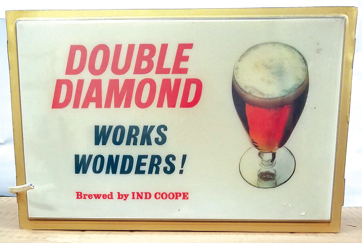 As usual, there will be a number of items from Burton such as an Ind Coope Double Diamond sign. This beer was trademarked in 1876 by Allsopp’s, who merged with Ind Coope in 1934. By 1958 it was the fastest selling bottled beer in Britain. It was, it is said, a favourite tipple of the late Duke of Edinburgh. The brewery site is now owned by Carlsberg.