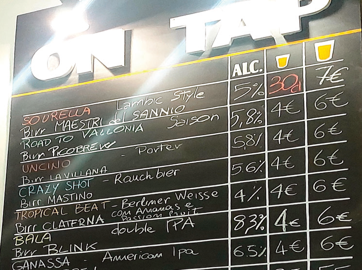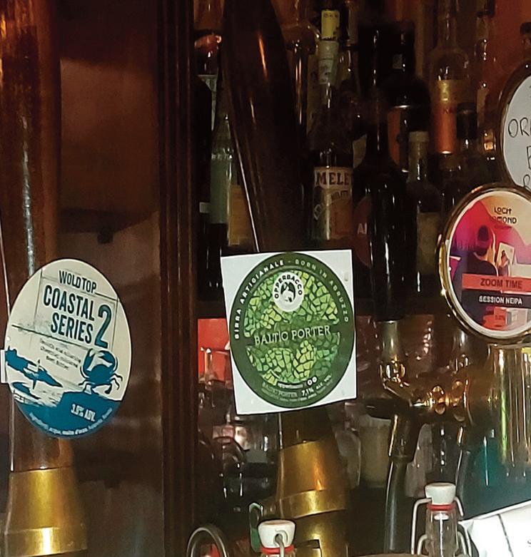We’d been quite impressed with these three watering-holes, but better places were to come on subsequent evenings. On the north-eastern side of the city centre we found Lortica, a busy, basic bar with a dazzling choice of draught beers that included a pils, a weizen bock, a tripel, a sour ale and a Baltic porter, plus two ales from British breweries! Intriguingly, the Baltic porter and one of the British beers, Wold Top Coastal Series 2, were served from handpulls on the bar. I drank a tasty 6% ABV IPA which appeared to be a house beer brewed by the Rurale brewery near Monza, north of Milan. I then sampled the Baltic porter, from a small brewery called Opperbacco in central eastern Italy, north of Pescara. At 7.1% ABV this was a touch lightweight for a Baltic, tasting smooth and smoky.
