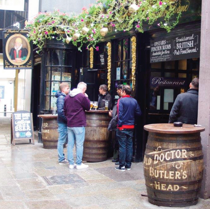 Last October (2022 – see note) I took myself up to the city to visit yet another Good Beer Guide pub that I had never visited plus a couple of others along the way. I took the train to Waterloo then the Drain to Bank. From the station I headed north along Princess Street and Coleman Street. It seemed strangely quiet, almost as if it was a Sunday, with hardly any traffic about. I was looking for an alleyway called Mason’s Avenue and the Olde Dr Butlers Head, a Shepherd Neame house. It has an old dark wooded frontage with three large wooden barrels outside and is Grade II listed. There has been a pub on this site since 1610 although this building dates from 1666 when, I recall, there was a bit of a fire. Dr Butler was the court physician to James the First.