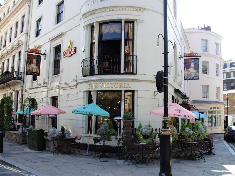The final pub was the Victoria. It is Grade II-listed and rates three stars on CAMRA’s Inventory as above. It is a former Charrington house, now owned by Fuller’s, and it has some very early and spectacular fittings. Such was the amount of pub renovation at the end of the C19 and since, that any decor from before the late-Victorian era is incredibly rare. The décor here is stylistically mid-Victorian and a precise date, 1864, is suggested by the year on a clock in the bar-back fitting. This, and a side wall, have large mirrors with intricate gilding and coloured decoration. The counter is certainly from 1864 and retains a functioning brass water-dispenser for diluting spirits. A framed print illustrates scenes from Queen Victoria’s life, from whom the pub obviously takes its name. There are several outside doors that would once have led to separate internal drinking areas. Upstairs, the Theatre Bar has ornate fittings imported from the old Gaiety Theatre c1958.
