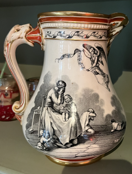 It was funded by popular subscription and each of the individual donors were given a water jug to commemorate their generosity. Mark Justin, who runs the pub, has recently been successful in acquiring one. It was made in Stoke on Trent at the celebrated Burslem factory and is dated ‘January 1, 1855’ on the bottom. It is in very good condition, given its age. Mark will put it on show as soon as he can find a suitable display case. There is another example in the Florence Nightingale Museum at St Thomas’s Hospital.