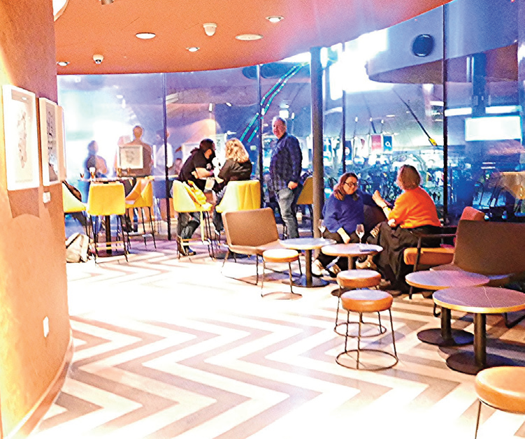 The pub is huge; there are three floors with outside terrace seating on the ground floor and balcony seating on the top floor, with 360o spectacular views.  The middle floor is a sports bar with ten television screens and the kitchen.  Each floor has a bar selling Meantime beer (all keg).  Tucked around the back of the ground floor is the brewery, with a small bar directly opposite.